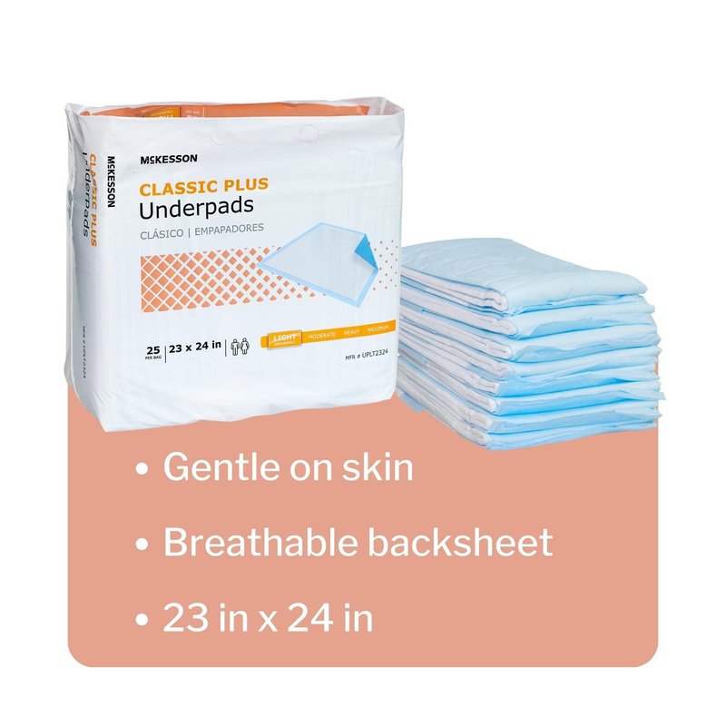 McKesson Classic Underpads, Incontinence Bed Pads, Light Absorbency, 23 in x 24 in, 25 Count