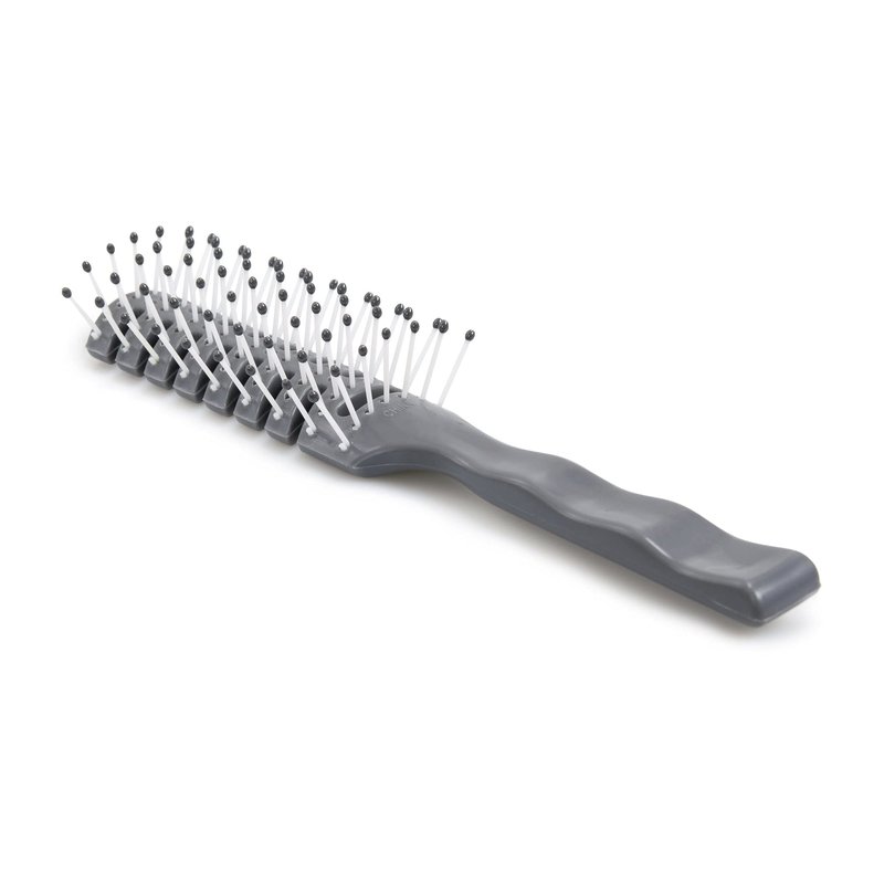 Smooth, style and detangle hair with an McKesson 7.7 Inch Grey Hairbrush. Each brush has soft bristles for gentle brushing and healthy hair maintenance. Flexible black Epoxy ball tips at the end of each brush tip help the brush glide through the hair easily, limiting abrasions to the scalp, broken strands of hair, or painful pulling. This plastic hairbrush is compatible with all hair types and offers a more soothing experience to the user's scalp and hair than other brushes by minimizing hair damage and loss. The curved plastic hairbrush head with systematically placed bristles helps to penetrate into the thickest sections of hair with minimal effort. Both men and women can use the brush with wet or dry hair. The durable overall design of this vented hairbrush can provide easy styling and reliable, long-term use.