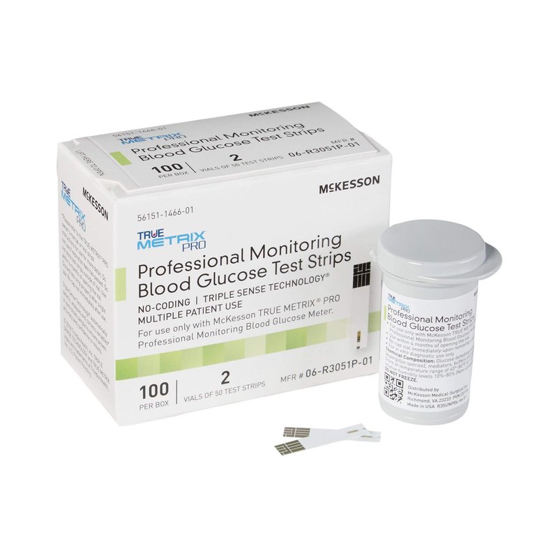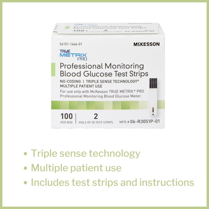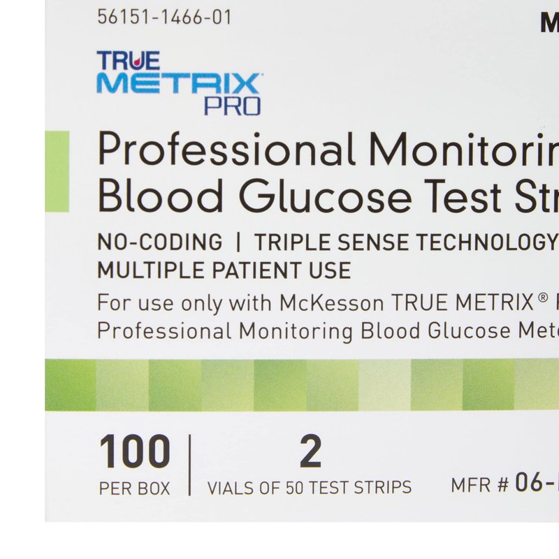 McKesson True METRIX PRO Professional Monitoring Blood Glucose Test Strips - No Coding, Triple Sense Technology, Multiple Patient Use - Vials of Strips, 100 Strips, 1 Pack