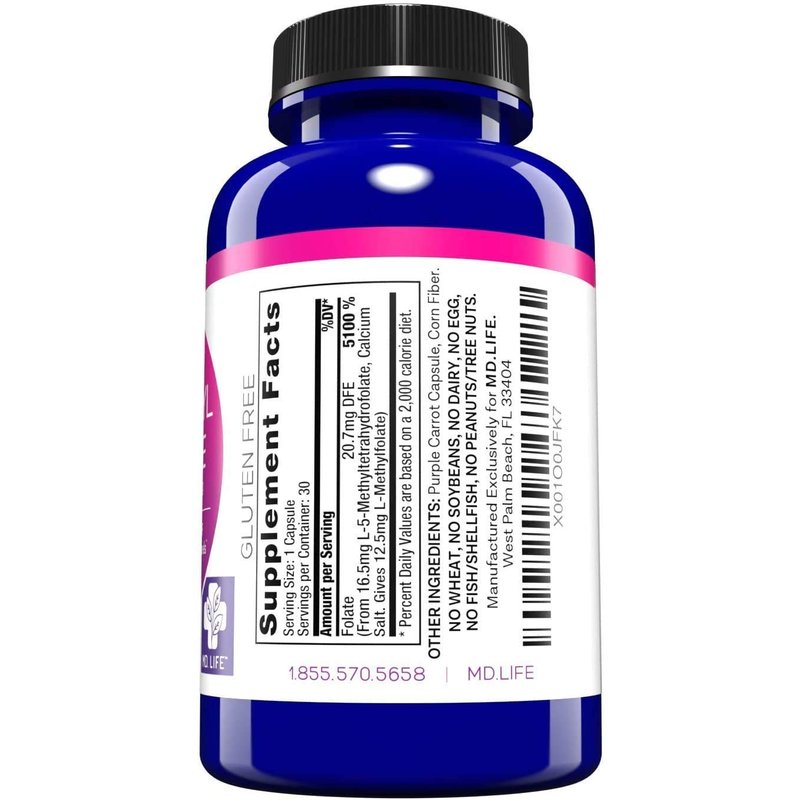 - TRUST IN QUALITY: MD. Life l methylfolate 12.5mg meticulously designed by experts and manufactured in small batches using superior ingredients. These folate supplements are proudly made in the USA in an FDA registered facility, adhering to GMP certification and undergoing rigorous third-party testing. Rest easy knowing that our products meet the highest standards of safety, quality, and performance.