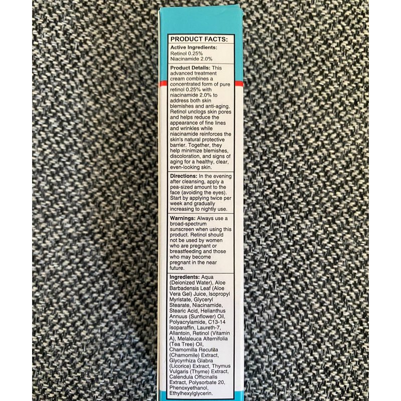 - RETINOL CREAM: This unique retinol cream combines high-strength 0.25% retinol and 2% niacinamide to help reduce blemishes, target fine wrinkles and uneven skin tone to help improve the skin's texture for more youthful-looking skin. 0.5 fl. Oz