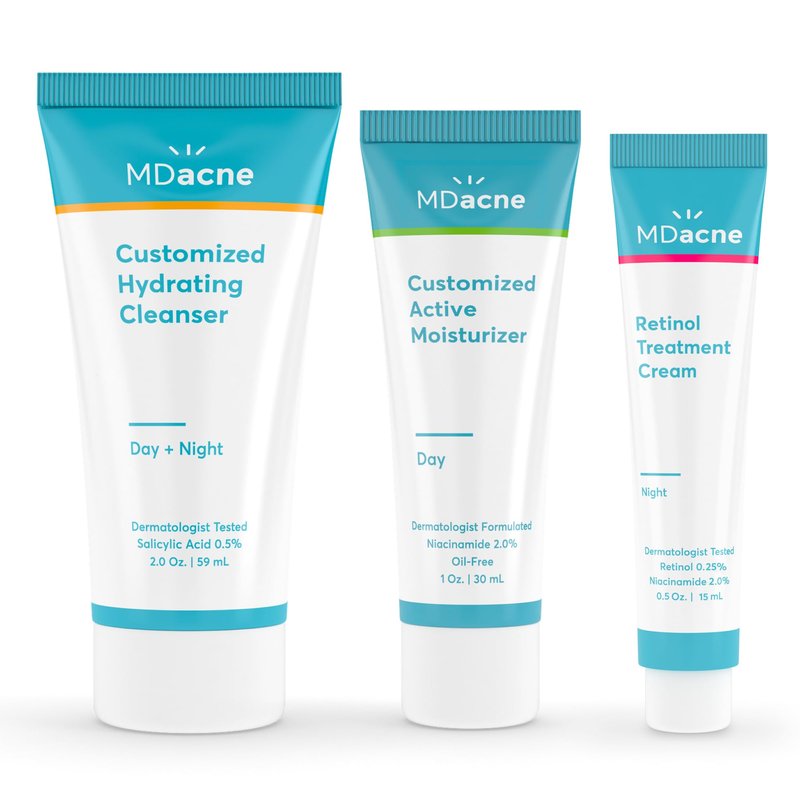 MDacne 3 Step Retinol Acne Kit - Retinol Cream 0.25%, Salicylic Acid Cleanser, Niacinamide Moisturizer - Plant-Based kit for Hormonal Acne, Blemishes, Wrinkles, 60 Day Acne Kit + Pimple Patch Gift