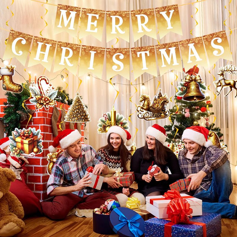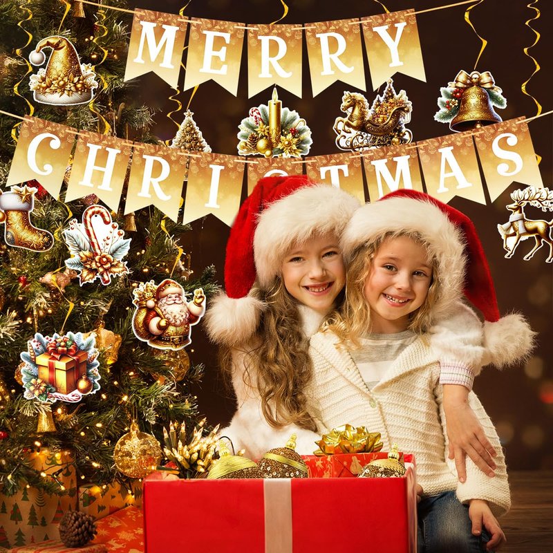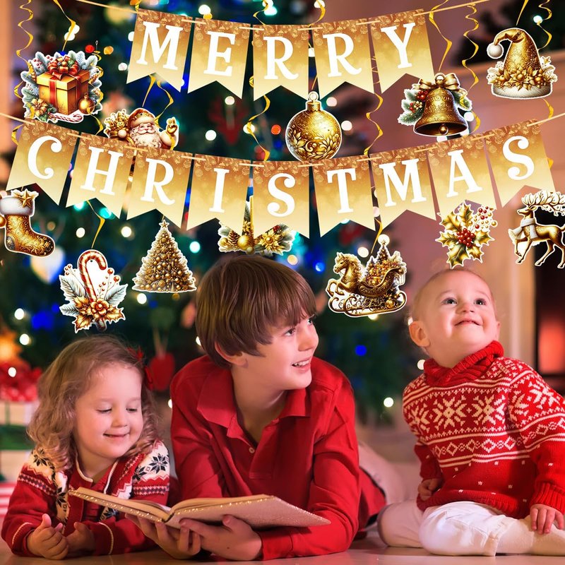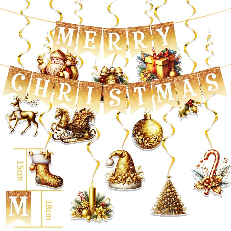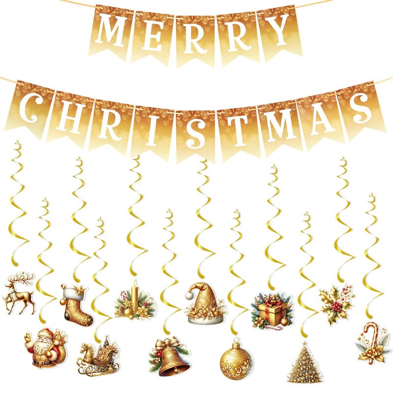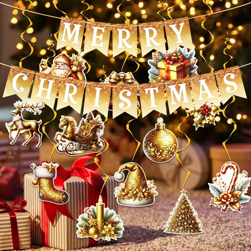 - 【Christmas Banner Package Included】: 1 pc MERRY CHRISTMAS banner + 12pcs of hanging swirls in different designs.This Christmas decoration set will adding more joyful festive atmosphere for Christmas and New Year decor.