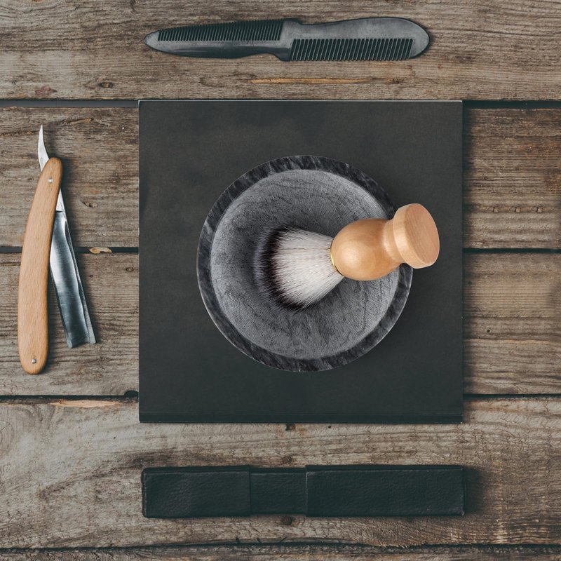 shaving soap. Marble material retains heat well, which helps keep lather warm and provides