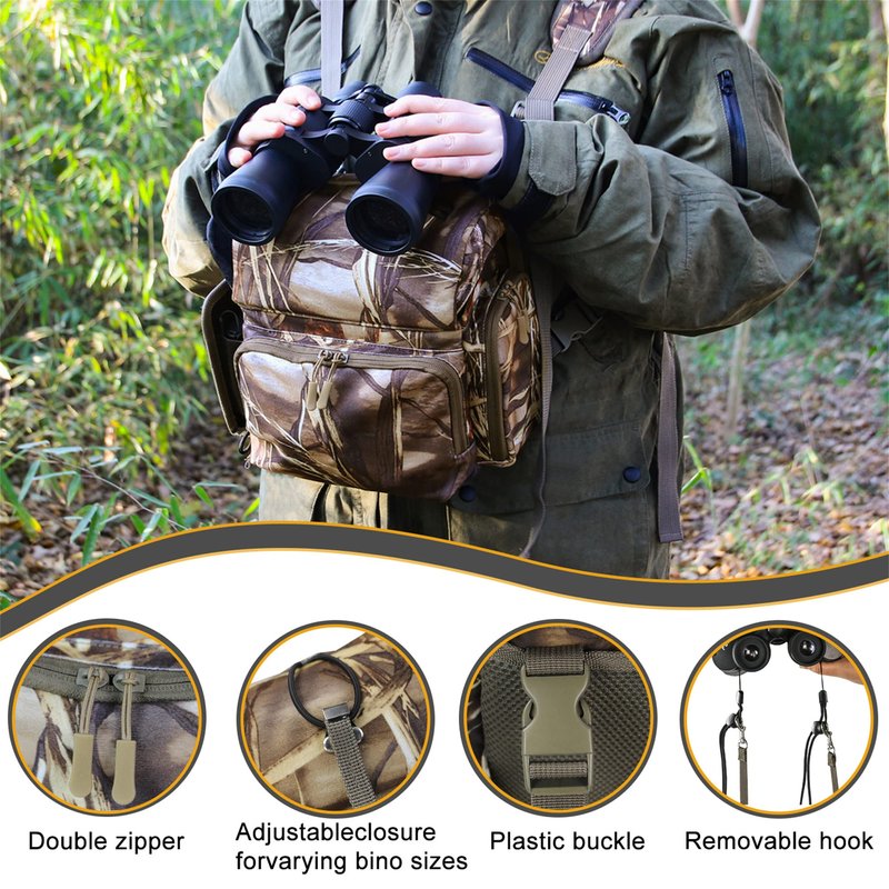 - 🔭Multiple Pockets: This camo binoculars include 3 spacious pockets. This binoculars case have a big pocket in front for storing a bow release or extra ammo, a side pocket for knife or ammo, & a back, quick-access phone pocket.