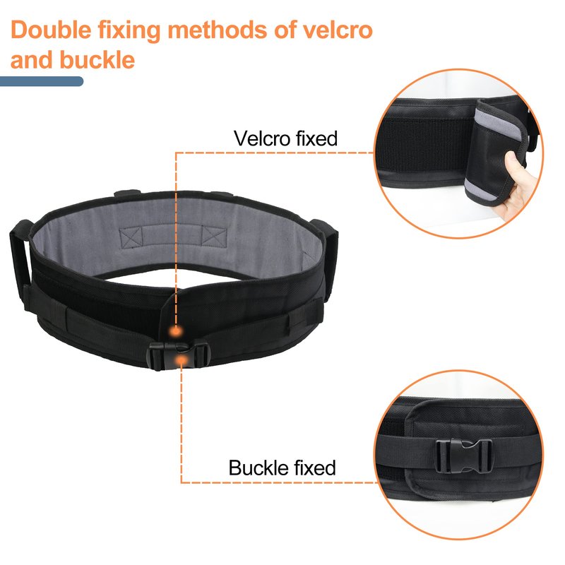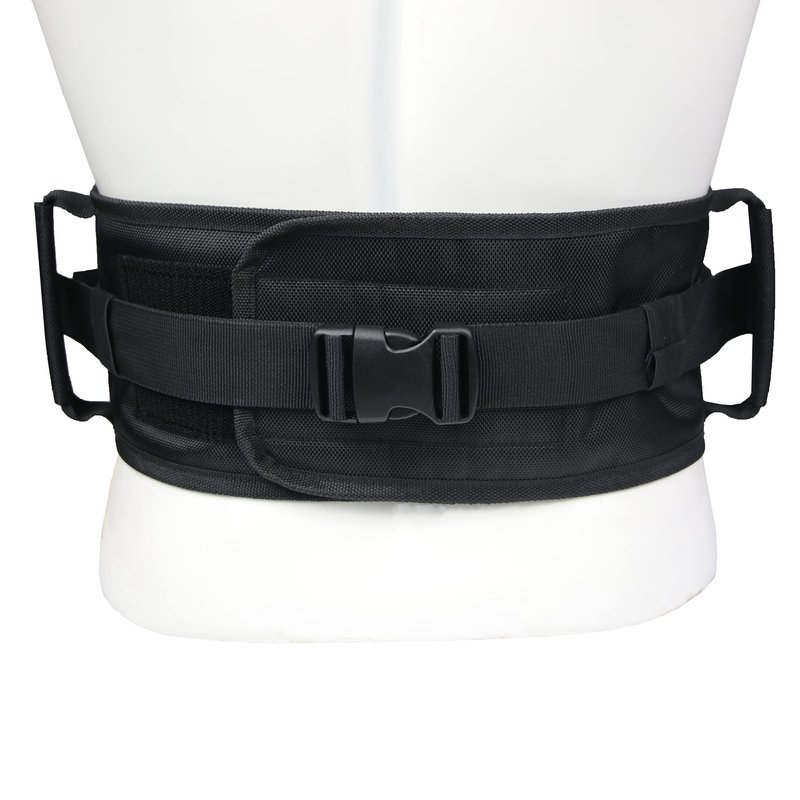 - Easy to Adjustable: The click buckle is safer, easier and faster for patients to wear and remove. The velcro can be adjusted freely to fit a person's waist size. Once adjusted to the right size according to the person's waist size, you're done and don't have to keep doing that every time you use the belt. Transfer belt is adjustable to accommodate waists up to 47”.