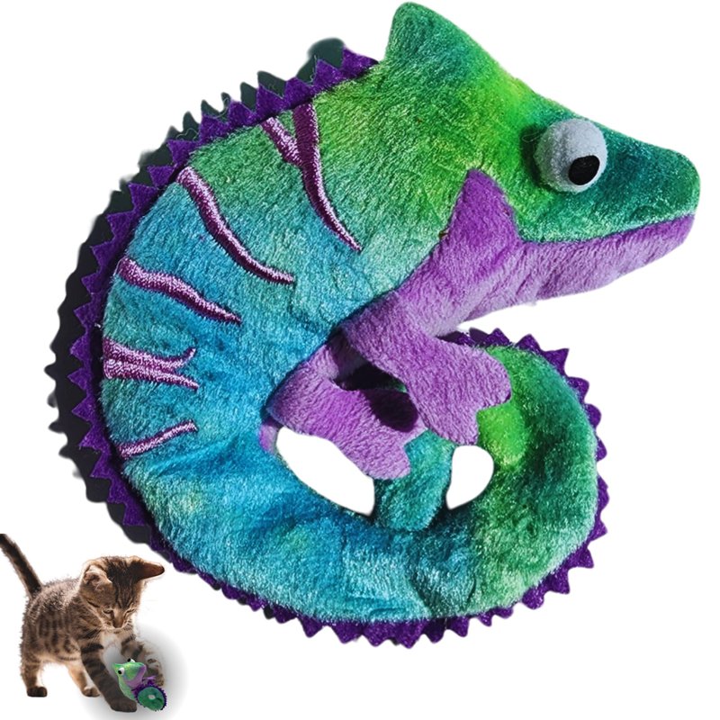 - Lizard Catnip Toys with North American Catnip, Cats exercise: Package including: 1 x cat catnip toys 4.5-INCH Plush Catnip Toy (Chameleon/ Lizard) Catnip Crinkle Toy lizard toy.