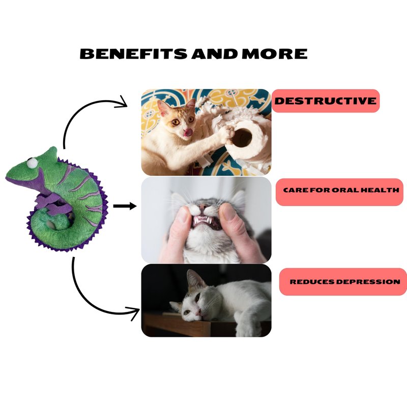 - Cat lizard Encourages healthy chewing habits: These dental cat chew toys are perfect for teething kittens or older cats that enjoy chewing. They help satisfy their chewing instincts and redirect their attention away from your hands and furniture.