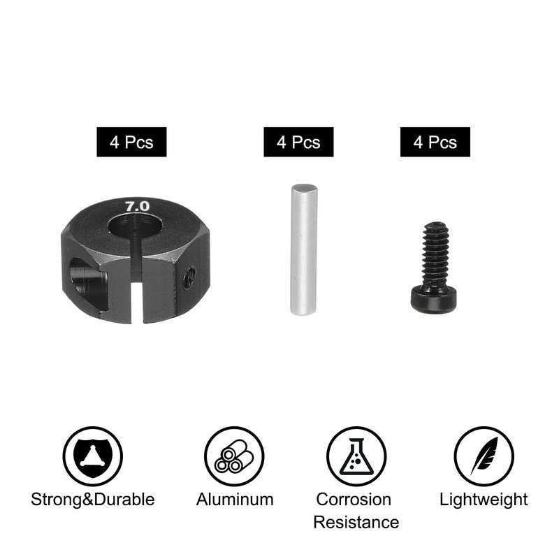 - Aluminum RC Wheel Nuts ,is in size of:Hole diameter:5mm/0.2 inch;Length of opposite side:0.7cm/0.28 inch;Nut outside diameter:12mm/0.47 inch;Thickness:7mm/0.28 inch;Pins:10x2mm/0.39x0.08 inch(L*D);Screws length:6mm/0.24 inch;Color: Black;Material: Aluminum;In the package of(12PCS): 4 x RC Screw Wheel Nuts;4 x Pins;4 x Screws;