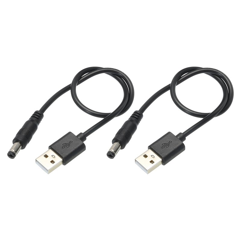 - Product name: 5V USB to DC Cable; Material: PVC,Copper; Cable Length: 0.3 M / 1 Ft; DC Plug: 5.5mm x 2.1mm / 0.21 Inch x 0.08 Inch; Maximum current support: 3A; AWG: 22 AWG; Color: Black; In the package of: 2 Pcs x USB to DC Cable
