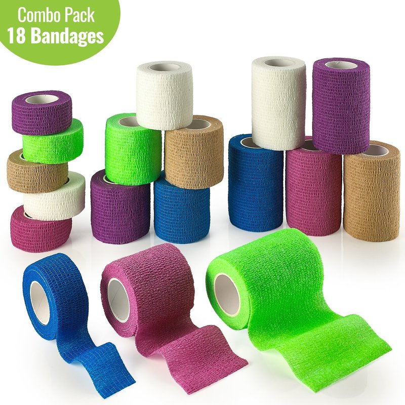 - 18 COLORFUL BANDAGE ROLLS IN ONE SET- Numerous assorted color bandage rolls in single package Enjoy this combo pack contain 6 of each size 1 inch 2 inches and 3 inches one of each color brings you a total of 18 bandages!
