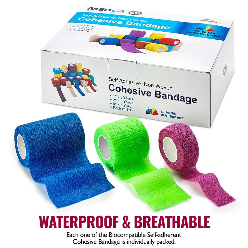 MEDca Self Adhesive Non Woven Cohesive Bandage COMBO PACK 1 Inch 2 Inch and 3 inch X 5 Yards 6 of Each Size Total of 18 Rolls 'Rainbow Color"