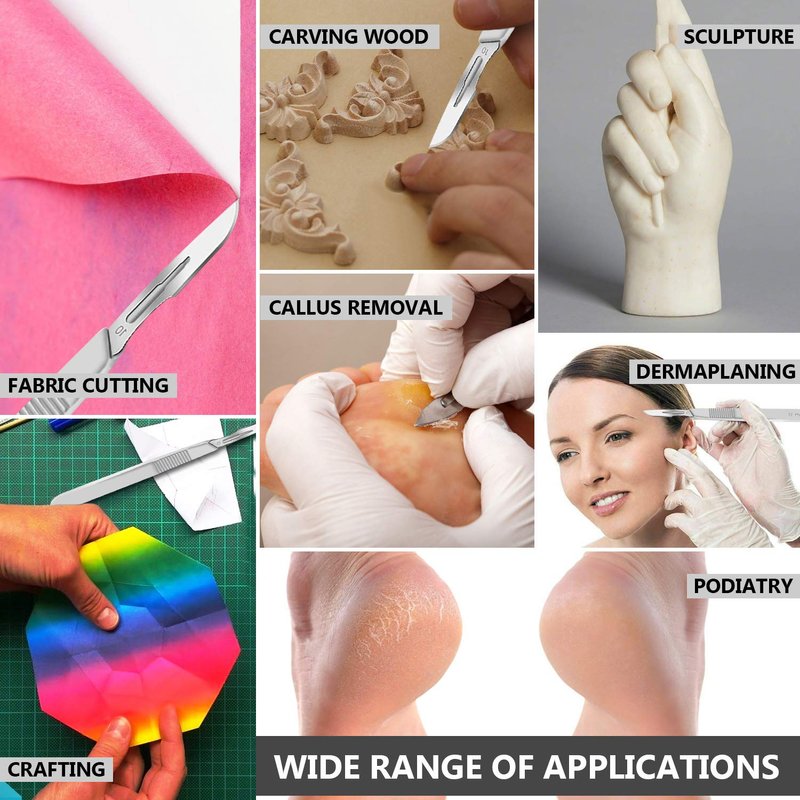 - ✅ A TON OF OTHER USES - mycology, comedones removal, prototyping electronics, model making, wood and clay sculpture, desktop work, small cuts and trimming, biology projects in school and labs, arts and crafts, trimming, gardening, vinyl cuts, wood projects, medical procedures, dissection, suture and surgery practice, scalpel for skin, debridement