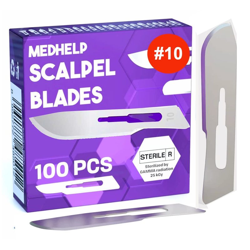 - ✅ SAVE SOME MONEY- pack of 100 MedHelp sterilized surgical scalpel blades 10 help you learn to dermaplane by yourself, 10r blades dermaplaning, and you can safely use it for a lot of small aesthetic procedures: great as a scapel#10 disposable for callus, podiatry scalpel, dermatology scalpel pedicure, cyst removal tool, blackheads removals, acne scalpel, dissection and suture practice, and more;