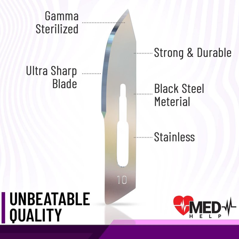 - ✅ WHILE YOUR OTHER DISPOSABLE SCALPEL BLADES 10 may be too dull, not sharp enough, not sterile, flimsy or difficult to use, scalpels surgical MedHelp brings a HIGH QUALITY CARBON STEEL scaple blade #10 that is SAFE and EASY to use. This means a YOUNGER BRIGHTER face for you and lots of other skin problems solved, a scalpel knife