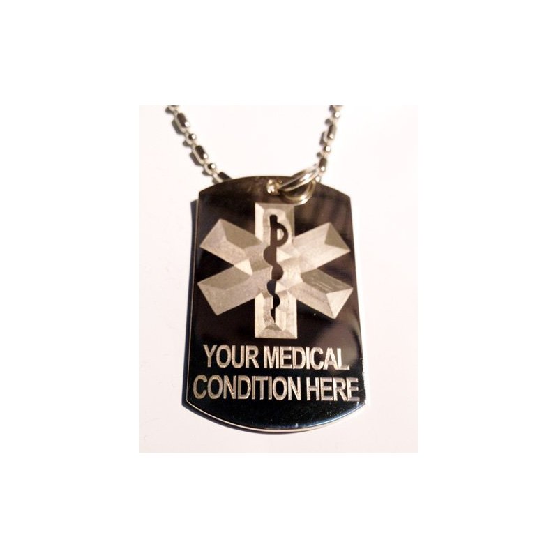 Medical Emergency Personalized Customized "Your Medical Condition Here" Logo Symbols - Military Dog Tag Luggage Tag Key Chain Keychain Metal Chain Necklace
