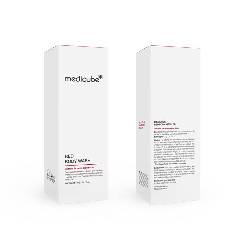 Medicube Red Body Wash is a gentle body cleanser that is perfect for people with sensitive skin and concerns for body acne. It contains Salicylic Acid (BHA), Niacinamide, and Lactic Acid (AHA) that work together to provide effective relief from body acne breakouts. Our body wash is free of 26 allergy-causing fragrances, ensuring that it is safe and gentle for your skin. With a low pH level, it helps to maintain your skin's natural balance while preventing dryness and skin irritation. It also leaves your skin feeling smooth and refreshed after every use. Salicylic Acid (BHA) works to unclog pores and exfoliate dead skin cells, reducing the occurrence of body acne breakouts. Niacinamide helps to improve skin texture and appearance, while Lactic Acid (AHA) helps to brighten and hydrate your skin. Apply a suitable amount of Medicube Red Body Wash to a loofah or washcloth and lather it onto your body, then rinse thoroughly. Use it daily for best results. Everyone has skin concerns. But not everyone finds the right solution. By working with dermatologists, we research the most effective formula and develop using the best ingredients.