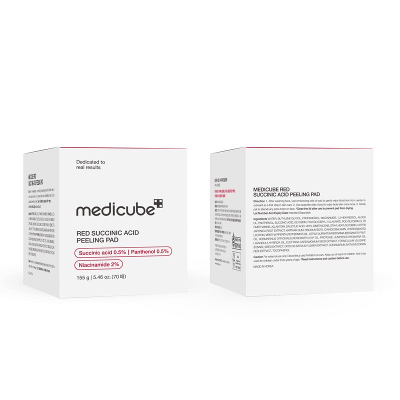 Medicube Red Succinic Acid Panthenol Facial Peeling Pads - Exfoliating Toner Pads for Breakout-Prone Skin with Niacinamide, AHA, BHA, and Soothing Panthenol - Non-Comedogenic