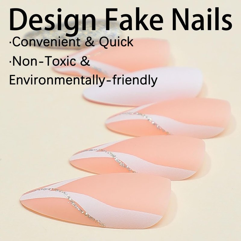- 【White Line Fake Nails】Matte false nails easy to wear and unloading, made by high quality ABS material, not easy to chip or break or fade, wouldn't hurt your nails.