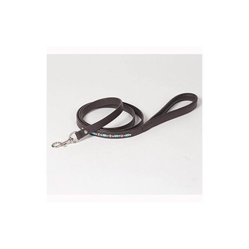 Medium Decorated Genuine Leather Dog Leash – 6 Feet with Beaded Decoration and Padded Handle