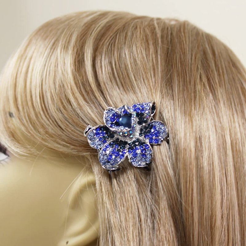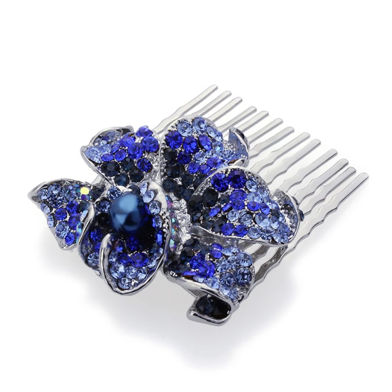 Medium Decorative Hair Comb Rhinestone Crystal Rose Simulated Pearl Bridal Hair Comb, Blue