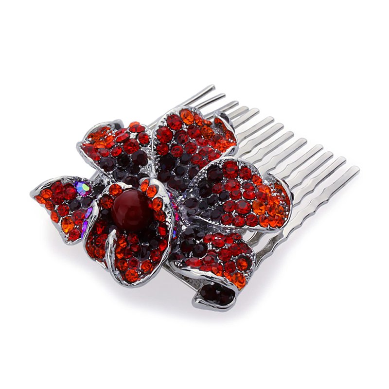 Medium Decorative Hair Comb Rhinestone Crystal Rose Simulated Pearl Bridal Hair Comb, Red