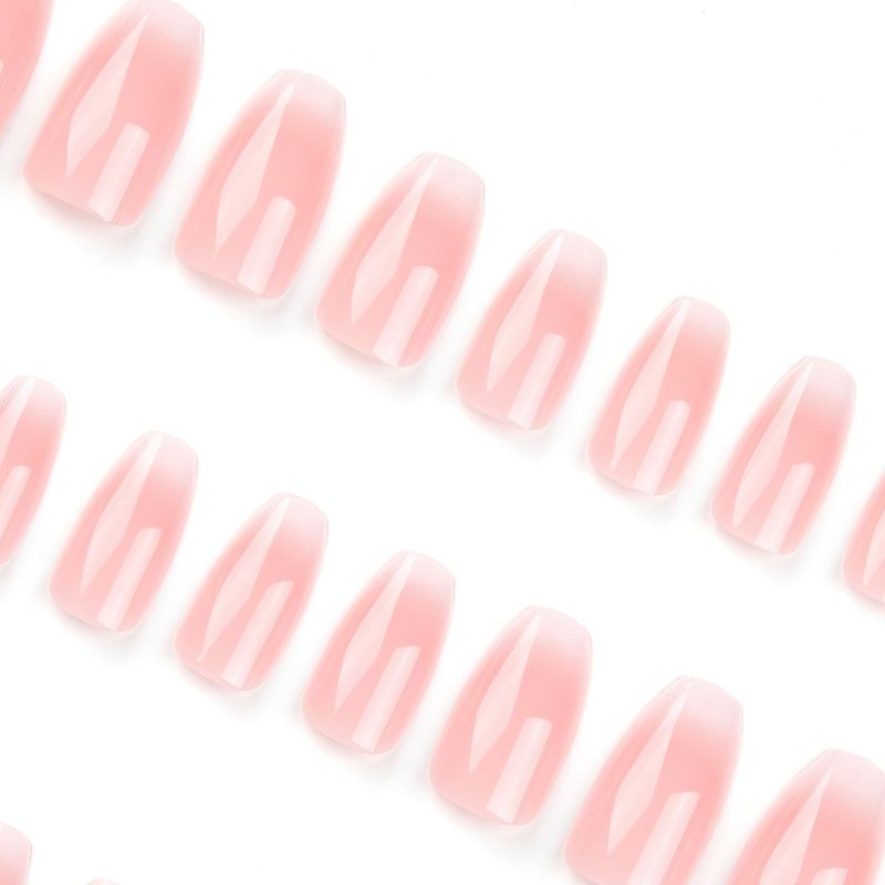 - 【Soft & Flexible】Made with soft gel, our gradient pink white false nails are gentle on your nail beds and feel like real nails. They fit the nail bed perfectly with a seamless cuticle line.