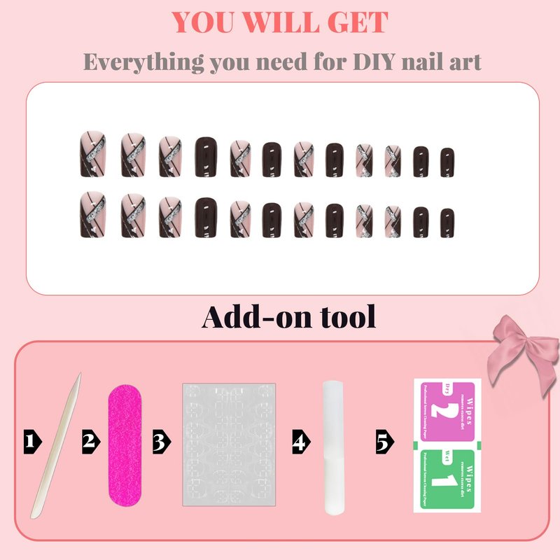 - 💕【False nails with glue pack】24 pcs-12 Sizes medium press on nails, glue on nails medium length 1 stick , 1 nail file,, 1 sheet jelly glue. 1 Cleaning Cloths,1 wooden stick.please note:durability of jelly glue is not as good as liquid glue, but it makes false nails Reusable,Please use suitable glue according to different scenes.