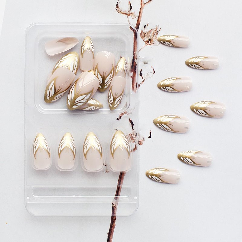 - 🦋【Elegant design】: Featuring a medium-sized almond shape, this set comes in a sophisticated nude pink color with gold metallic lines and a stylish butterfly French tip design, making it suitable for any occasion, from parties to special events.