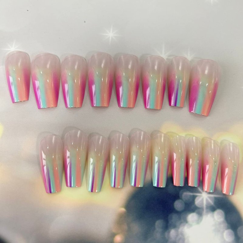 24Pcs Press on Nails Medium Rainbow Color Fake Nails Set for Women Manicure Decorations