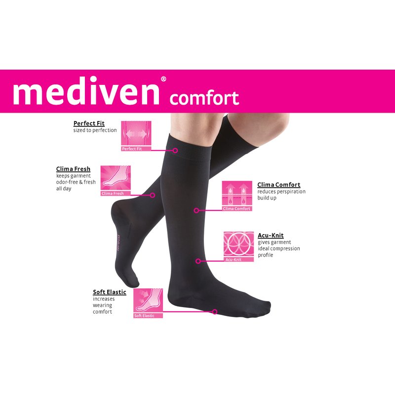 - Featuring a 20-30 mmHg compression, experience how soft compression hose can be. mediven comfort for women guarantees optimal wearing comfort and particularly easy application and removal – all without sacrificing medical efficacy.
