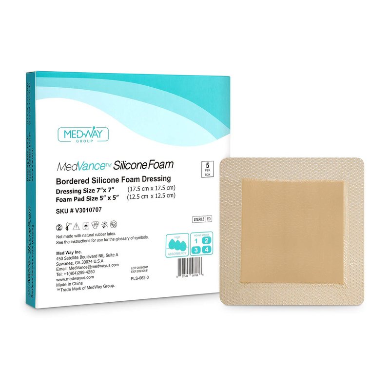 MedVance TM Silicone - Bordered Silicone Adhesive Foam Dressing Size 7"x7" (5"x5" pad), Box of 5 dressings
