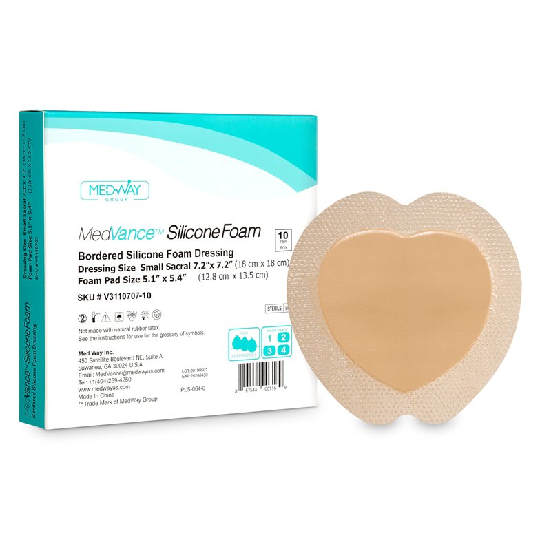 MedVance TM Silicone - Sacral Bordered Silicone Adhesive Foam Wound Dressing, Bed Sore Treatment Bandage for Sacrum, Size 7"x 7", Box of 10 dressings
