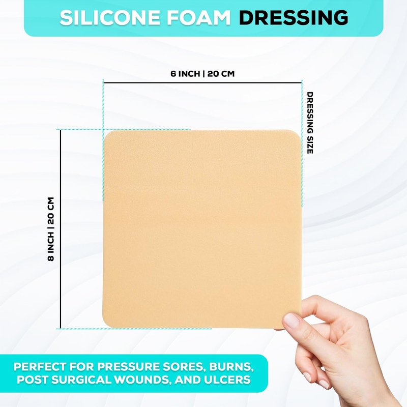 Silicone - Silicone Adhesive Foam Absorbent Dressing 8"X8", Box of 5, HCPCS Code: A6211