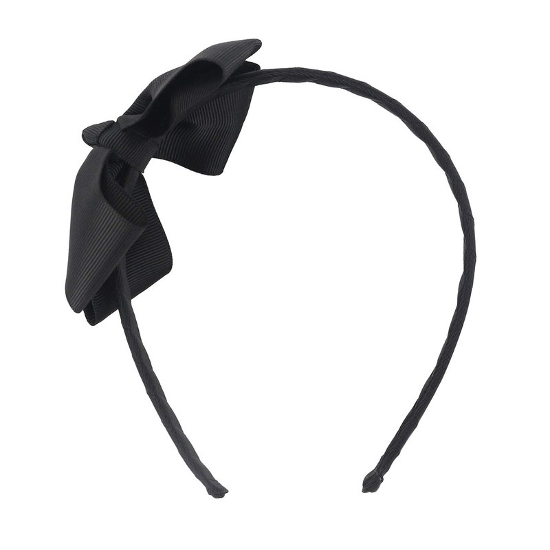 - Package comes in: 1 PCs BLACK grosgrain bow headband, approx size: 4.7" x 5.3" (L*W), bow size: 4.5" x 3" (L*W). Medium boutique bow on a grosgrain covered hairband. The size " large " indicates the bow size and not the hairband size. Our ribbon used is OEKO-TEX standard approved and the hairband contains no metal.