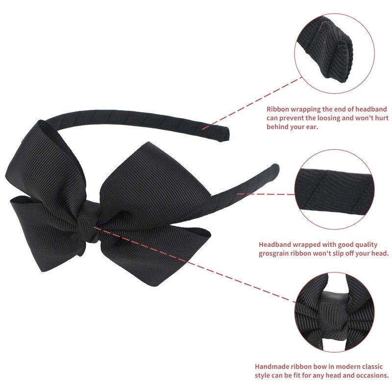 - Made of high quality smooth durable and amazing soft touching, using 100% polyester grosgrain fabric ribbon around hair hoops and all 100% handmade hair bows. Grosgrain bow headband won't easily slip off your head and keeping all the day. The hairband is made from plastic, which makes them very flexible and easily to virtually everyone, like kids, adults, teens and senior. Please don't push them with strong strength. Hand wash only.