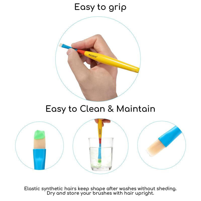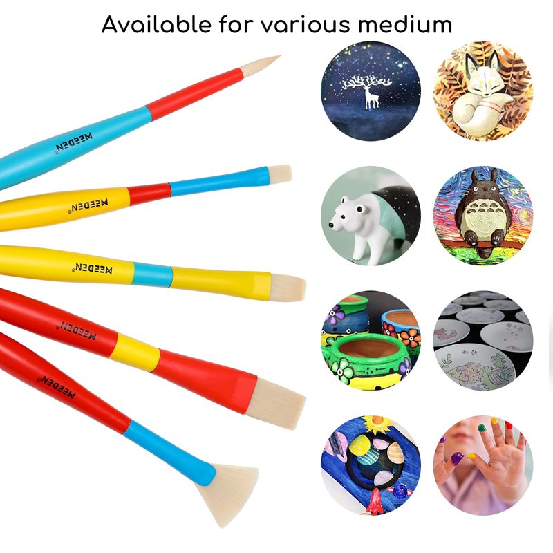 - PREMIUM KIDS PAINTBRUSHES: Premium MEEDEN kid's paintbrushes, crafted from top-grade nylon bristles, ensures a smooth and delicate painting experience. The colorful wooden handle is easy to grip and control, allowing children to rein quickly.