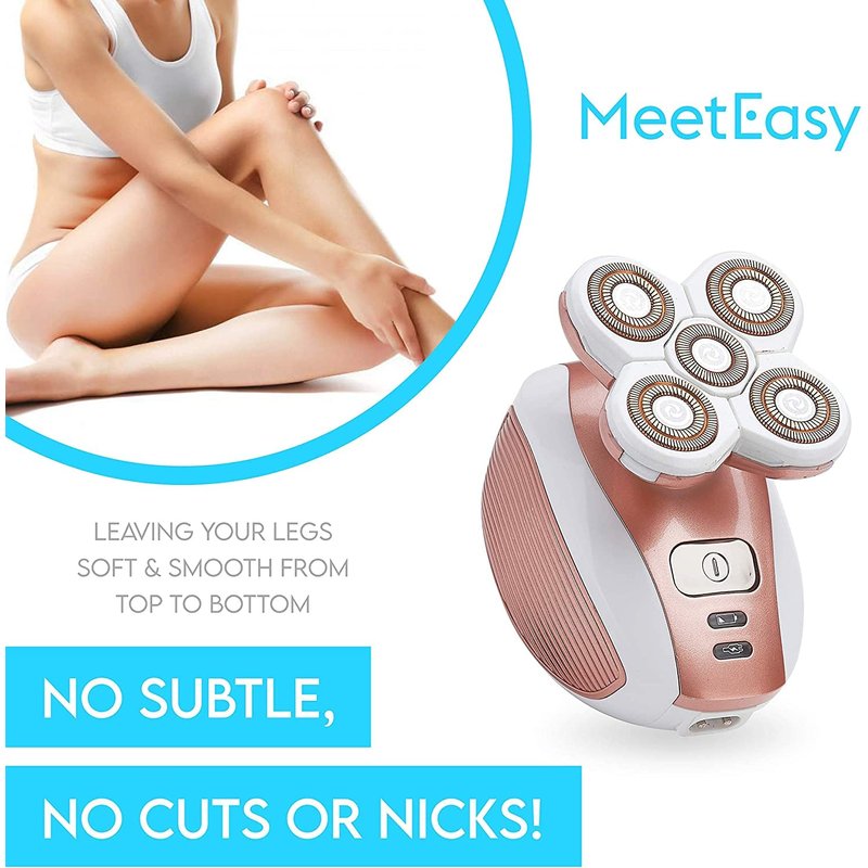 Meeteasy Electric Leg Shaver for Women - Rechargeable Painless Lady Razor for Leg Face Lips Body Underarms Armpit - Female Cordless Bikini Trimmer