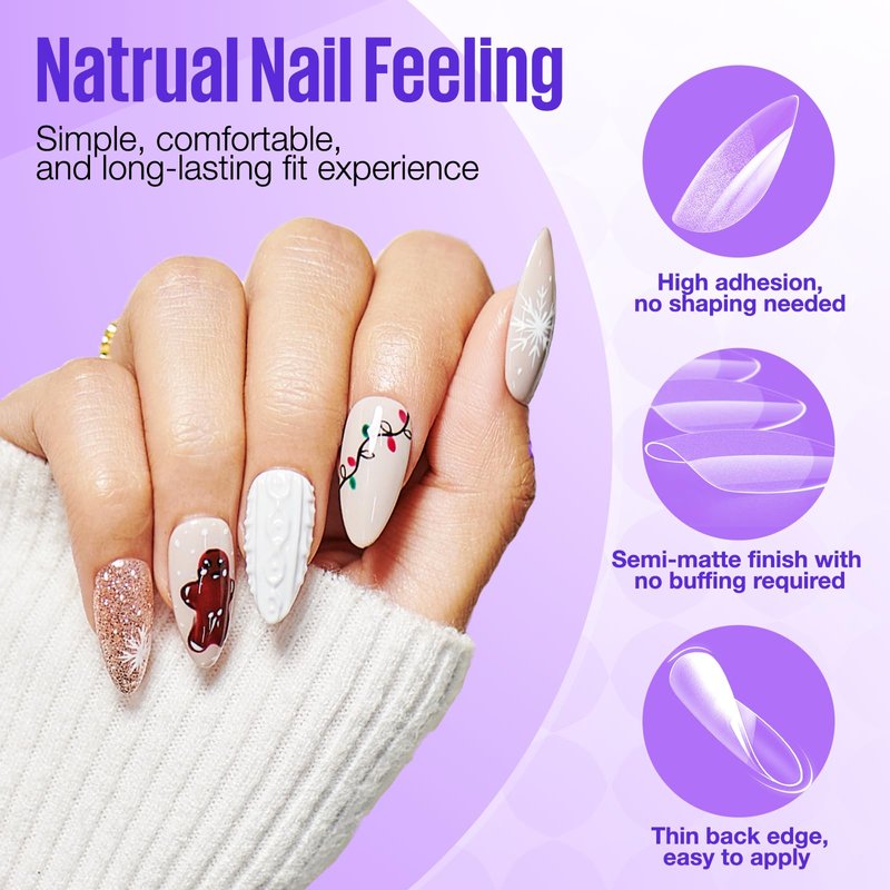 - Superior Full Cover Nail Tips : Crafted from high-quality materials, our full cover half-matte false nail tips are breathable, lightweight, and durable, giving your nails a natural and beautiful appearance. Free from toxins and odors, they are safe for both your nails and health. Pre-shaped for easy application