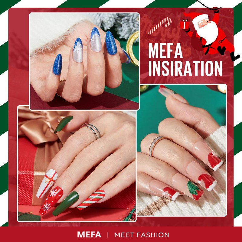 - Long Lasting 28 Days+: The Christmas nail polish easy to apply, you can get salon nail art in 3 minutes. The gel polish application is smooth, bubble-free. It takes 60-90s to cure under the MEFA nail lamp, you can achieve 28 days of color stay perfect