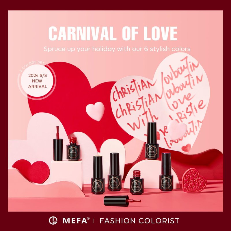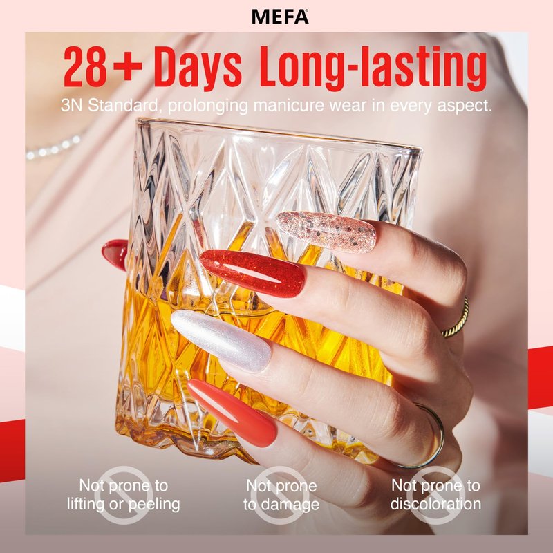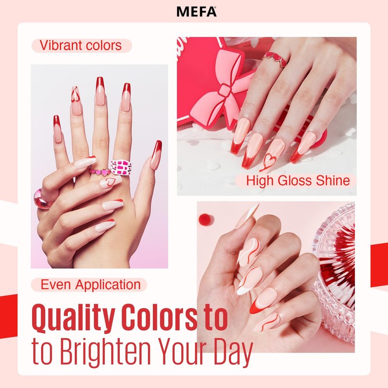 MEFA Red Gel Nail Polish Set 6 Colors, Red White Glitter Shades Sparkle Silver Champagne Love Times Tones Spring Nail Art Design at Home Manicure DIY Kit Gifts for Women Girl