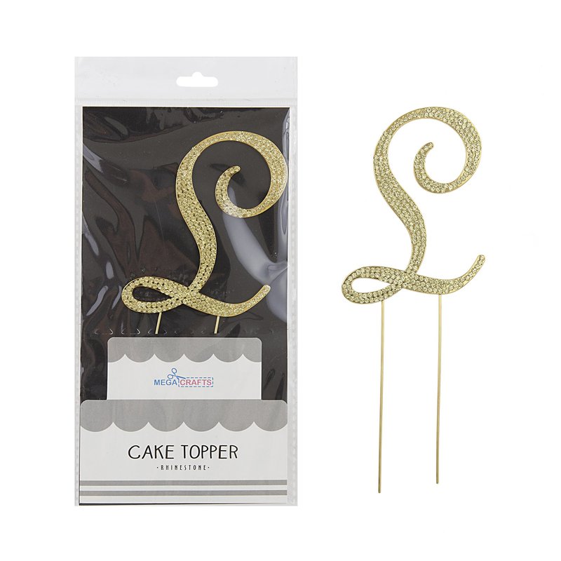 Mega Crafts Sparkly Gold Rhinestone Letter L Cake Topper Decoration, Shimmering Crystals & Durable Alloy Metal, Great for Birthdays, Anniversaries, Centerpieces, Party Favors, Celebrations & More