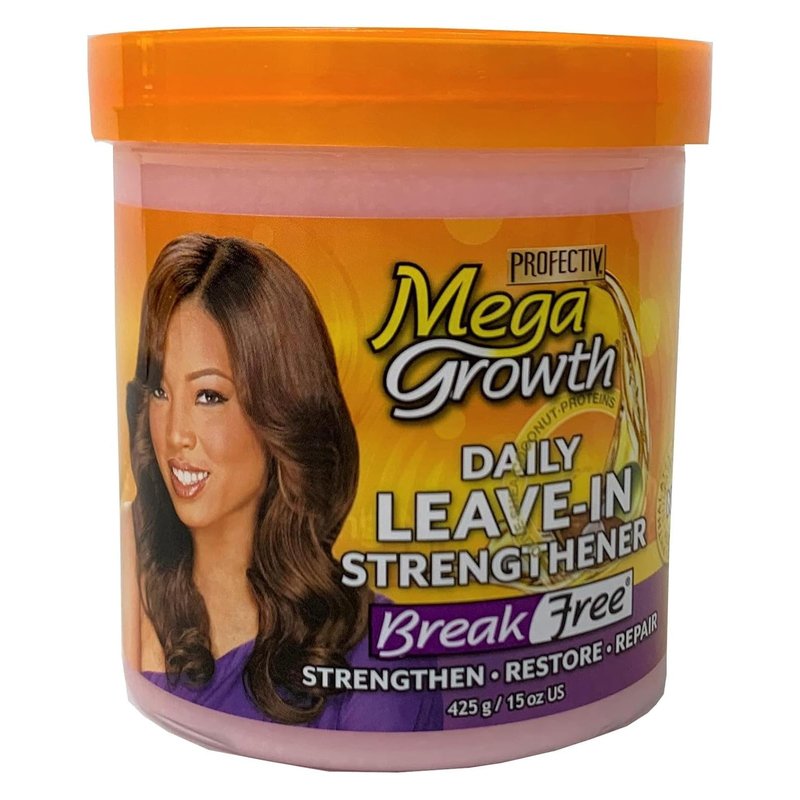- PROVEN HAIR CARE - Mega Growth Break Free Daily Leave-In Strengthener protects, restores, repairs & rebuilds fragile, damaged hair. The unique blend strengthens hair to promote stronger, longer, and healthier hair growth.
