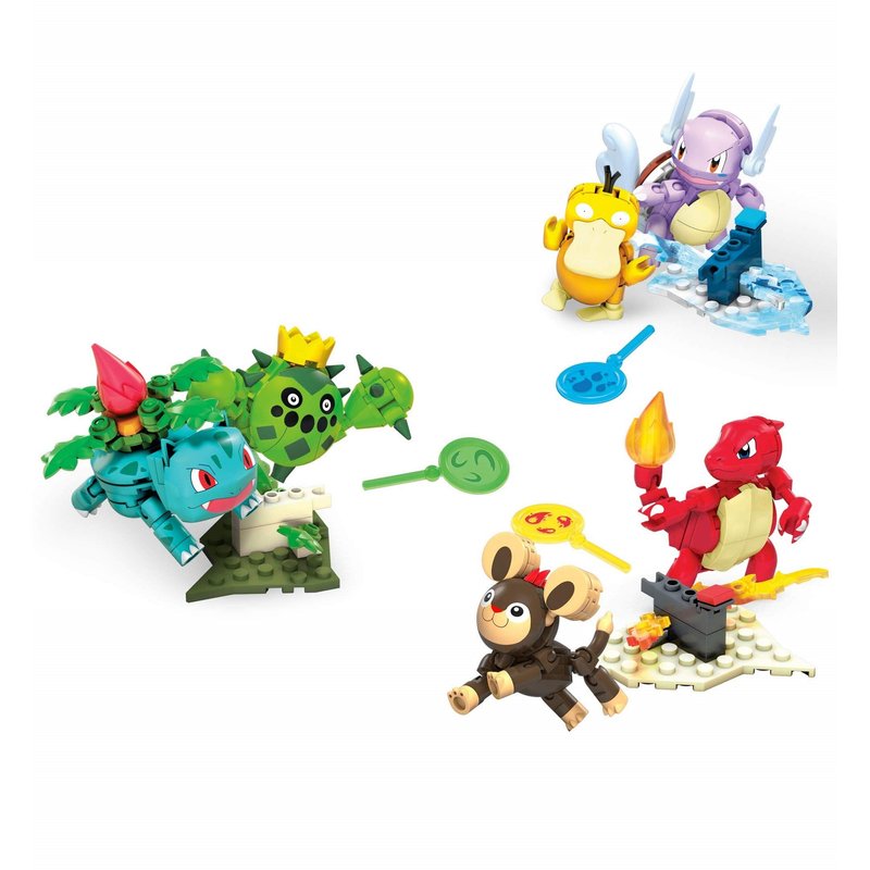 - 6 buildable and poseable Pokémon figures—Charmeleon, Litleo, Ivysaur, Cacnea, Wartotle, and Psyduck