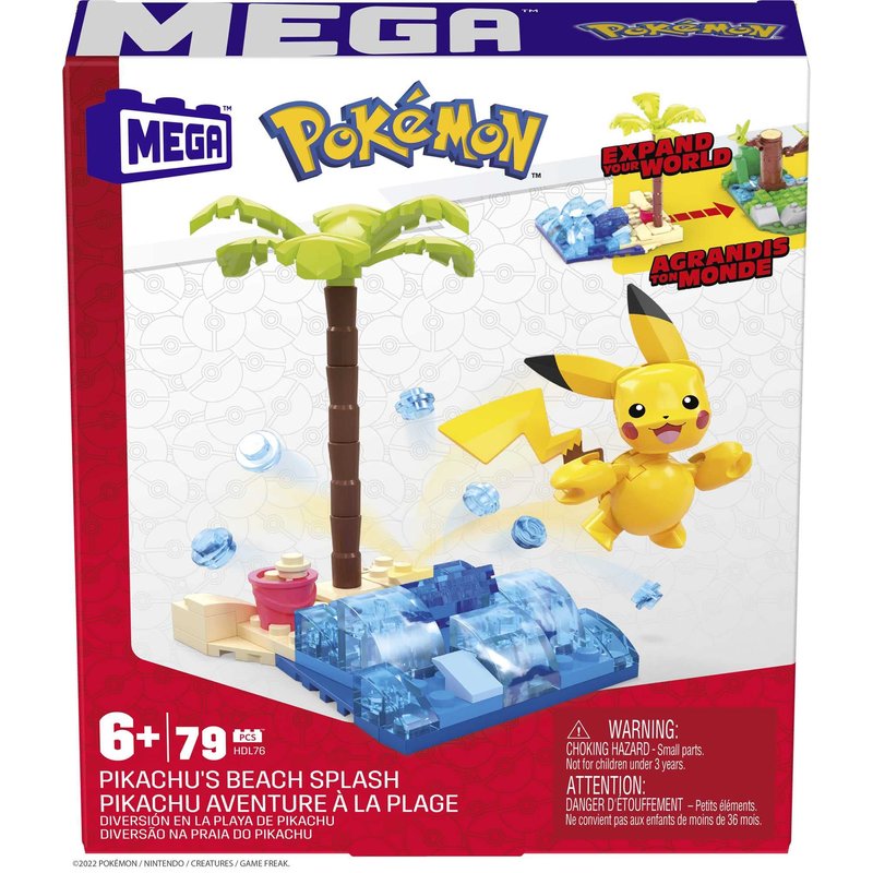 MEGA Pokemon Action Figure Building Toys Set, Pikachu's Beach Splash with 79 Pieces, 1 Poseable Character, Gift Idea for Kids