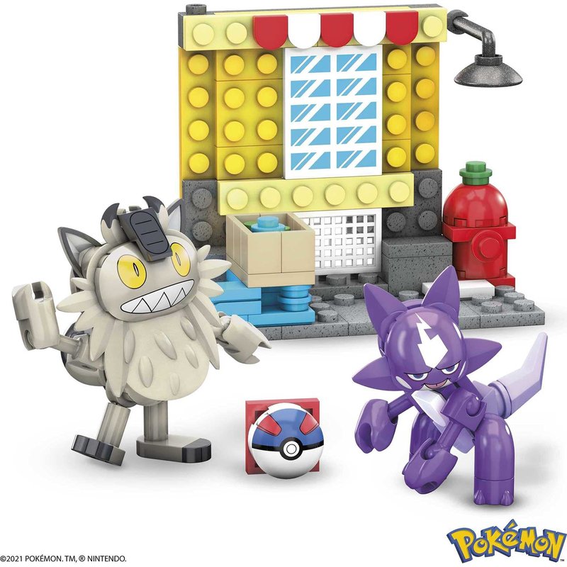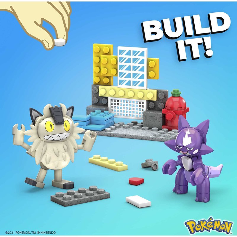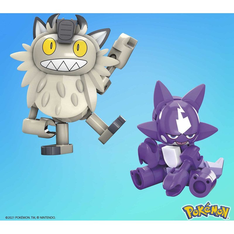 - 2 buildable and poseable Pokémon figures, Toxel and Galarian Meowth