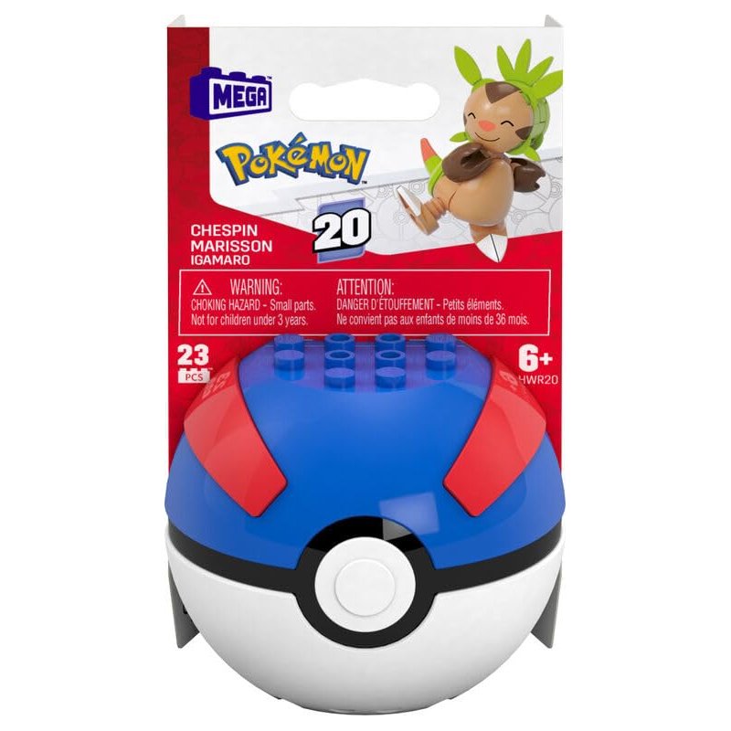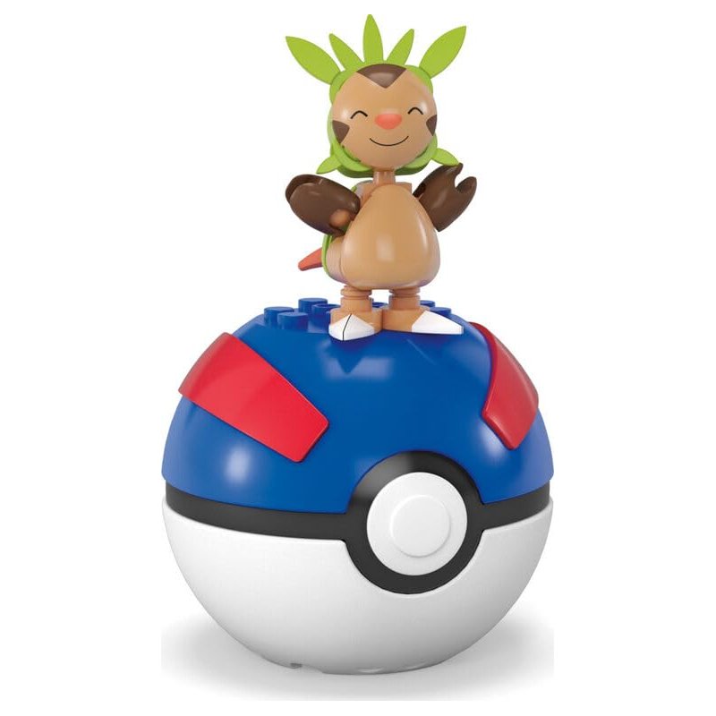 - Includes 1 buildable and poseable Chespin and 1 pronged Great Ball