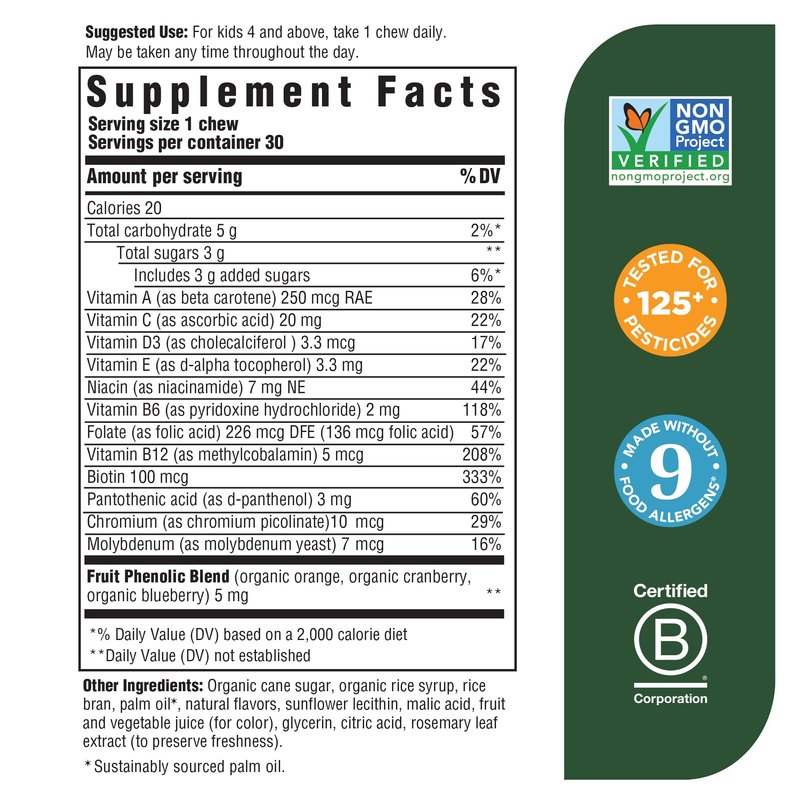 - Delicious one daily multivitamin soft chew with essential vitamins and minerals to support the growth and development of kids age 4 and up