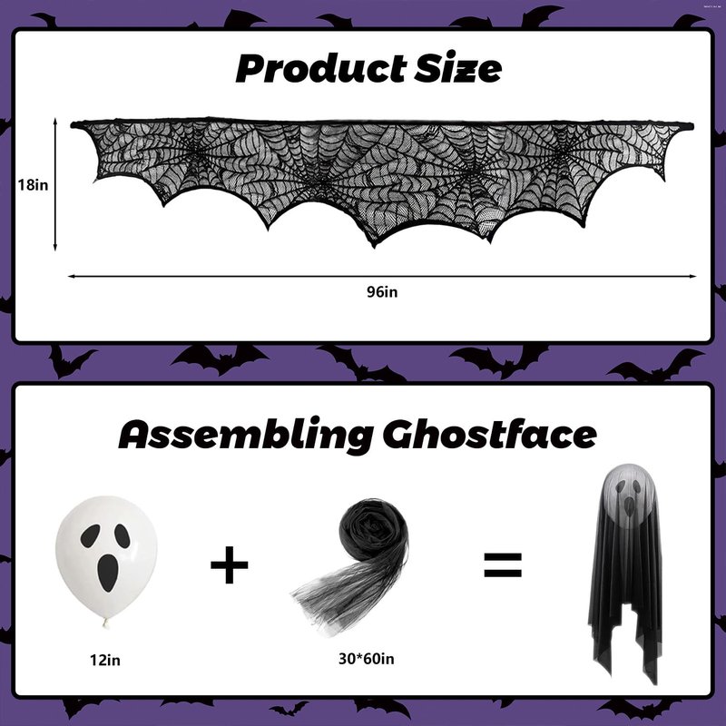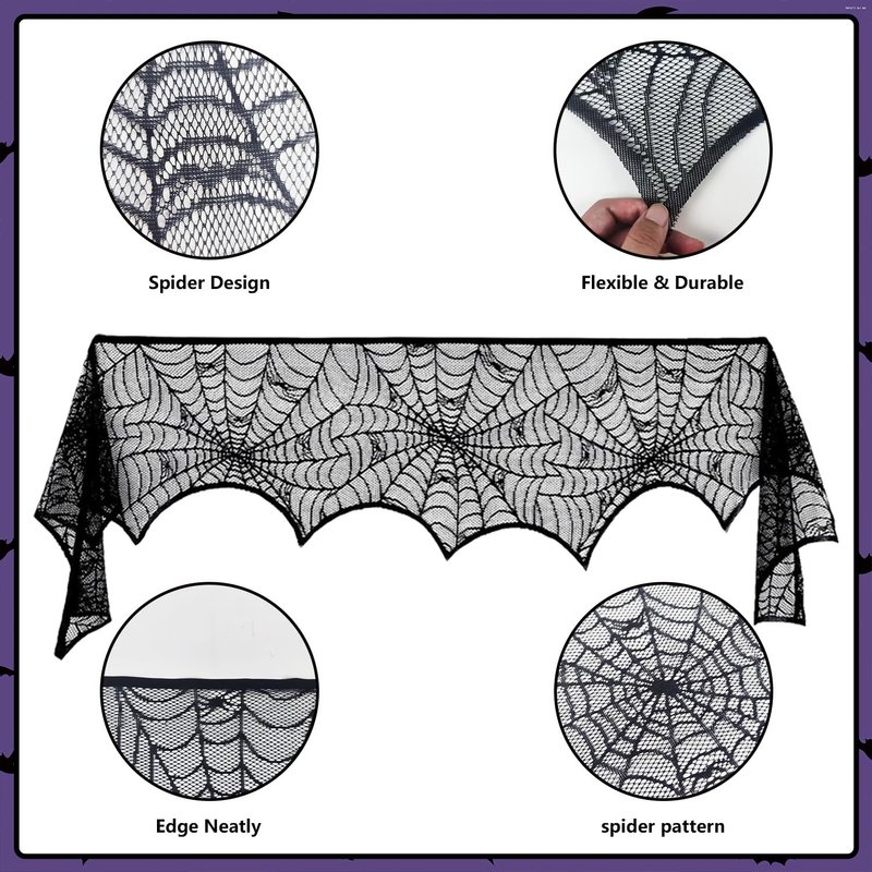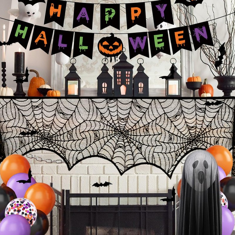 - Fireplace Mantel Scarf & 3D Bats: Our Halloween fireplace mantel scarf is made of polyester fabric that is wrinkle resistant and soft to touch. Featuring spider web pattern and black elegant lace wavy edge design for a thrilling frightening effect. Bat stickers are made with waterproof PVC material, realistic and vivid, DIY them into different wing angles, then apply to dry and clean surfaces to create a creepy bat swarm
