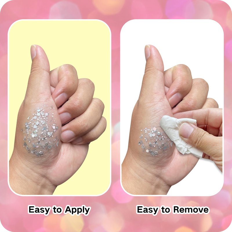 - Self-Adhesive Body Glitter:MEICOLY sparkly body glitter gel is adhesive,no need to use glue when applying it.The glitter gel can stay well in place for long time.Contains large number of intense holographic sequins, the color and shine of the laser sequins vary with the perspective,providing you with a glitter finish at party